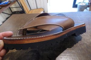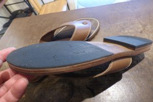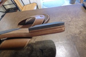 今回の様なレザーサンダルであれば、何かのスポンジソールを取り付けることとなります。