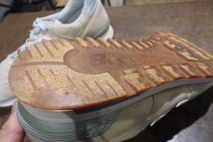 「オールソール交換」の完成です。 お選びいただいたのは「ビブラム762Kソール」の白です。 今回の白は普段ご選択される機会が少ないですが、いざ靴に合わせてみるといい雰囲気に仕上がりました。 元ソールと変わりカスタムのような修理になりますが、 違和感がなく仕上がり、 お客様にも大変喜んでいただけました。店頭だけでなく郵送でも修理をお受けしています。
