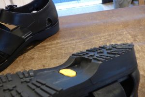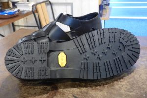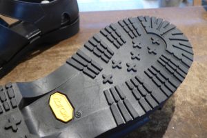 そしてアウトソールを接着して完成です。使用したのは元のソールとイメージが近い「ビブラム063」のラバーソールです。耐久性があるラバーソールです。