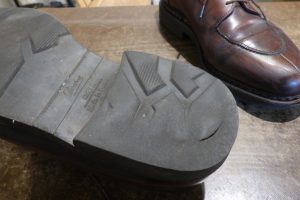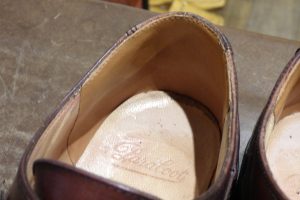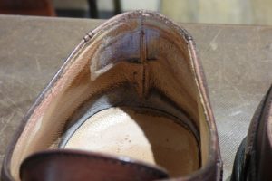 こうなると芯の直接負荷が掛かるので、芯材が柔らかくなり、カカトがフニャフニャになって靴の機能性が低下します。