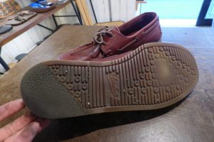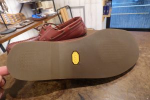 デッキシューズ用のラバーソール「ビブラム2303ソール」の茶を使用しました。