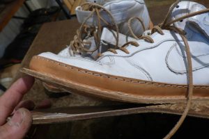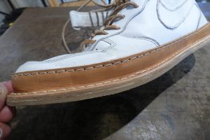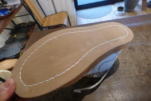 靴本体とマッケイ縫いで縫い、土台がしっかりと安定しました。