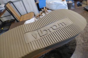 そしてスポンジ素材のアウトソールを接着して完成です。