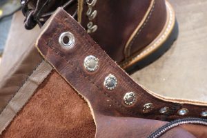 表の金具を裏で開いて菊のように見える加工ですが、菊割りは開いた金具がタンのレザー部分と擦れ、タンにキズが付きます。