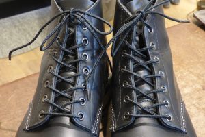 裏側は「菊割り」という取り付け方ですが、菊割りはタン部分のレザーと擦れてダメージが出来るので、キズが付かないタイプに交換をします。