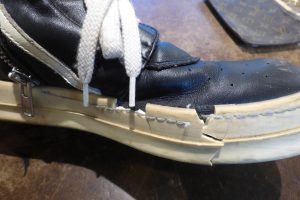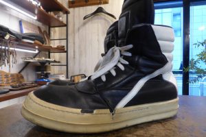 メンテナンスのご依頼が殺到しているリックオウエンスのスニーカーですが、今回はいつもと違う内容の修理をご紹介します。
