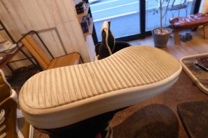 いつもと同様に靴底を「ビブラム342ソール」で靴底全体補強をしました。