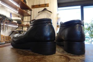 カカトは7mm厚の「ビブラム5342」のラバートップリフトで交換をし