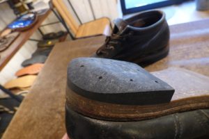 カカトは耐久性がある「ビブラム430」のラバートップリフトで交換をし、