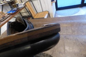 厚みがあるブロックヒールなので、交換のタイミングが難しいですが、当店では擦り減り具合が半分ほどが交換の目安と考えています。
