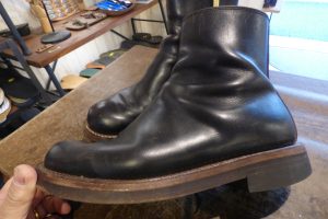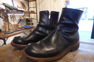 Rolling dub trio (ローリングダブトリオ)のサイドジップブーツをお持ちくださいました。 過去に多く修理をさせて頂いているローリングダブトリオですが、今回はいつもと違う修理内容です。