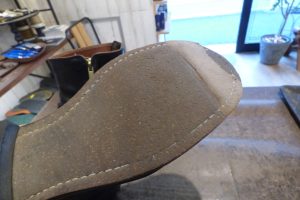 元より飛躍的に耐久性がある靴底になります。 コバ(ソールのサイド部分)は元と同じく荒削りの無着色で仕上げています。 「グッドイヤーウェルト製法」で作られているので、今回の様なソール交換は無理なく加工が出来ます。 違和感はなく仕上がり、 これで安心して履いていただけます。店頭だけでなく郵送でも修理をお受けしています。