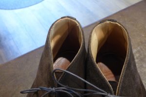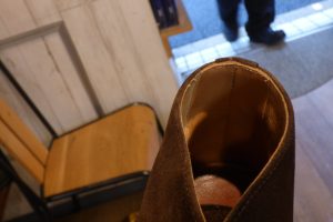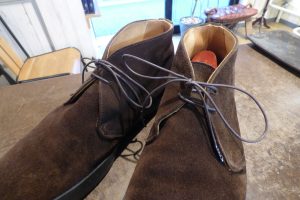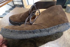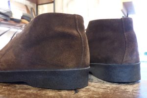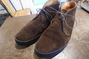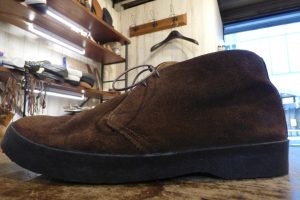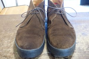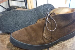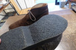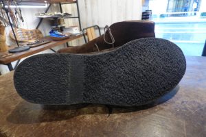 まずは靴全体を「クリーニング」で洗うメンテナンスと、靴底のクレープソールが劣化しているので「オールソール交換」です。