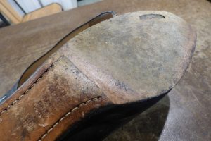 元のレザーソールの上に過去の修理でレザーハーフソールが貼られている状態です。