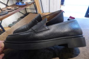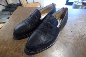 THOM BROWNE(トムブラウン)をお持ちくださいました。 一体型ソールのセメンテッド製法で軽量感があるトムブラウンです。 修理ではなく、靴のサイズ感の緩さでお悩みでした。