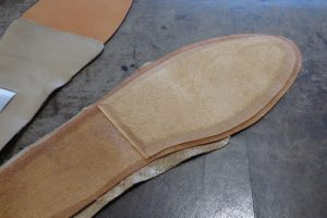 ご来店時に靴を履いていただき、サイズ感をチェックして靴をお預かりします。 元の中敷きを剥がし、形状に合わせ全体のインソールを製作します。 靴の緩さに合わせレザー2枚での調整となりました。 靴の中に敷き直すと 見た目に違和感がなくフィッティング調整の完成です。