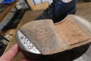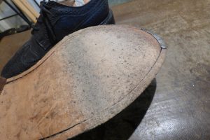 ダブルソールの靴でつま先が擦り減りやすい構造なので、ヴィンテージスティールを取り付けたいところですが、今後擦り減りが気になる場合、ハーフラバーの先端をカットしてスティールを取り付けることも可能です。
