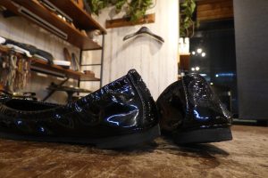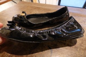 エナメルのバレエパンプスで