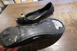 トリーバーチに限らず、バレエパンプスでとてもご依頼が多い修理内容になります。