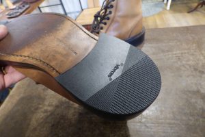 お客様好みに加工をさせていただきました。 「ビブラム5350」の全面ラバーで「トップリフト交換」をしています。