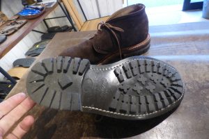 現在、コマンドソールは製造中止になり、在庫限りで廃盤になります。 このままでは履けないので「オールソール交換」で靴底を作り変える必要があります。 お客さま好みに 別ソールを使用し、 修理をさせて頂きます。 <after>