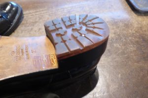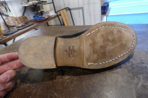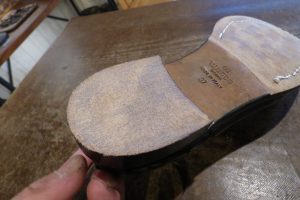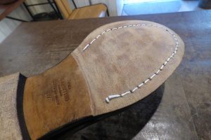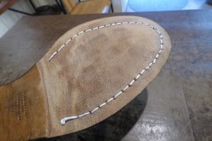 レザーソール前部を「マッケイ縫い」で縫いました。