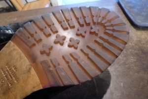 そして同形状に加工をした「ビブラム社のタンク型ハーフラバー」で新しく補強をしました。