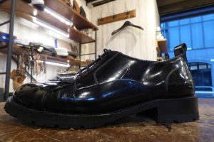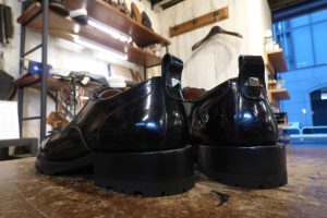 その為、過去にもソールが剥がれたことがある模様で接着修理をしたが、また剥がれてきたので改善修理をご希望されました。
