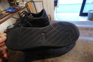 ヴァレンティノ純正のカップソールになり、再現するように修理するのは不可能になります。 なので別のカップソールで出来るだけ違和感がないように靴底を作り変えさせていただきます。 「オールソール交換」の完成です。 使用したにはイタリア・FINE PROJECT(ファインプロジェクト)社のカップソールです。