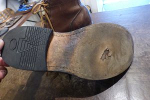 それ以降ご愛用されており、レザーソール中心部に穴が開いた状態です。