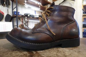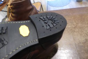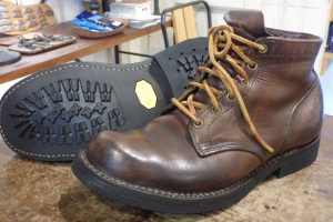 ワークブーツ用のラバーソールで張り替えさせていただきました。