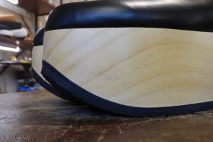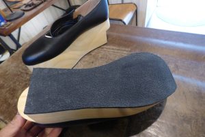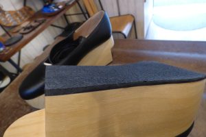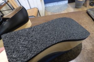 ロッキンホースのウレタン素材のソールは意外と擦り減りが早いので、このソールの上に厚みが出来るよう加工をします。