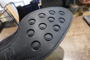 クラシックな靴だとレザーの積み上げは2~3枚となります。お客様は出来るだけヒールを低くしたいとご希望されました。