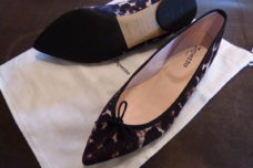 お知らせ, 靴の修理, Repetto(レペット)の修理事例Repetto(レペット)のバレエパンプスをお預かりしました。 アッパーは生地の特徴的なデザインです